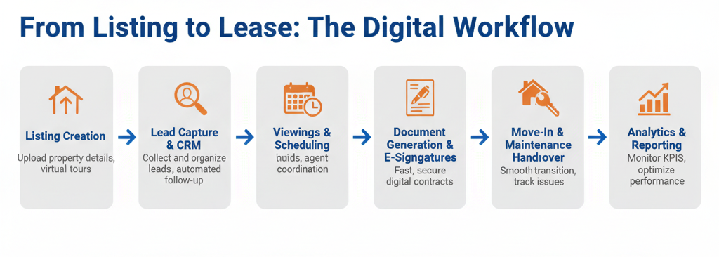 Gayrimenkul dünyasında hız para demektir—verimlilik ise mutlu müşteriler, hızlı sonuçlar ve daha az sorun anlamına gelir. PropertyCareApp olarak amacımız, satış ve kiralama ofislerinin manuel kağıt işlerinden oluşan karmaşık sürecini ilandan kira sözleşmesine kadar uzanan dijital ve akıcı bir yolculuğa dönüştürmektir. İşte platformumuzun bunu adım adım nasıl sağladığı.